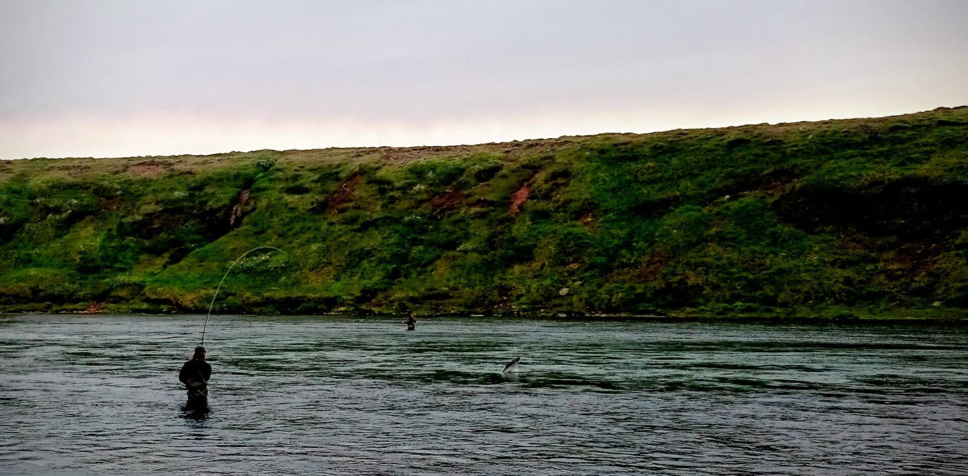 Blanda is every day fishing so well , and the size of the fish is amazing on Icelandic standards … lots of 96 to over a 100cm salmon landed … and lost , genatic of big fish is coming every year stronger and stronger , 20+ pounders in Iceland is now coming common , here on the picture is Thorsteinn local guide / angler fighting a fresh 20 pounder Salmon at beat 1 Blanda , Arni arnibald@lax-a.is