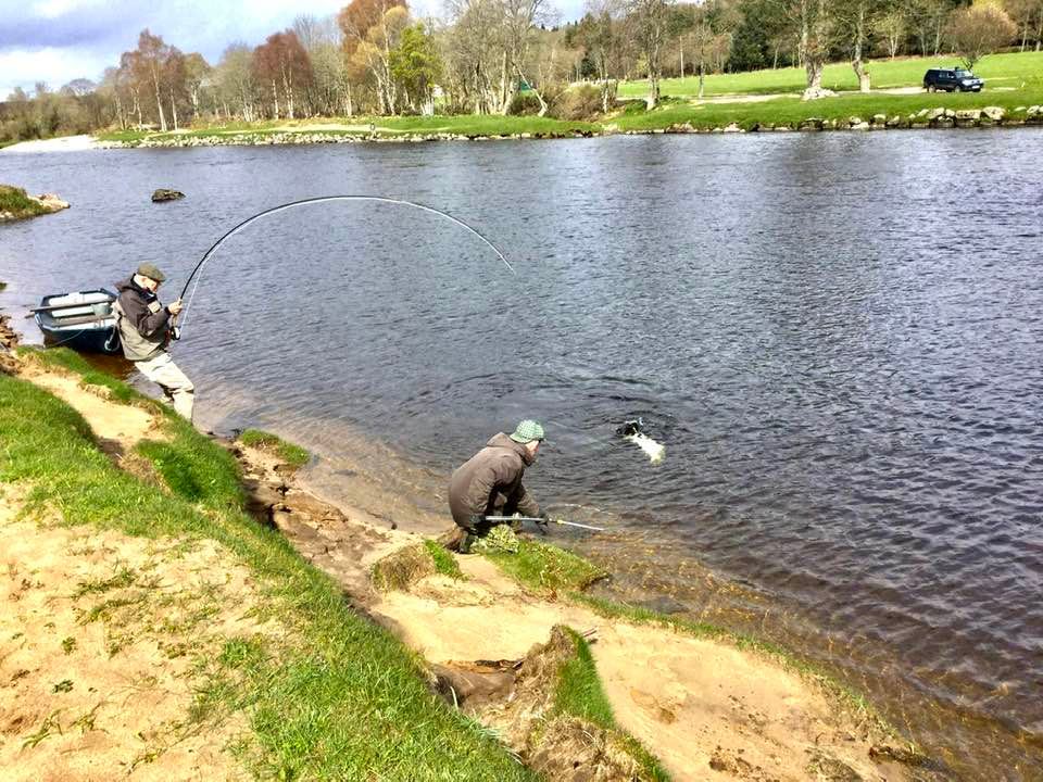 River Dee , great experienced Dee angler Wilfried Striessnig fighting a big Springer and Robert Harper landing. I have been fishing wit...