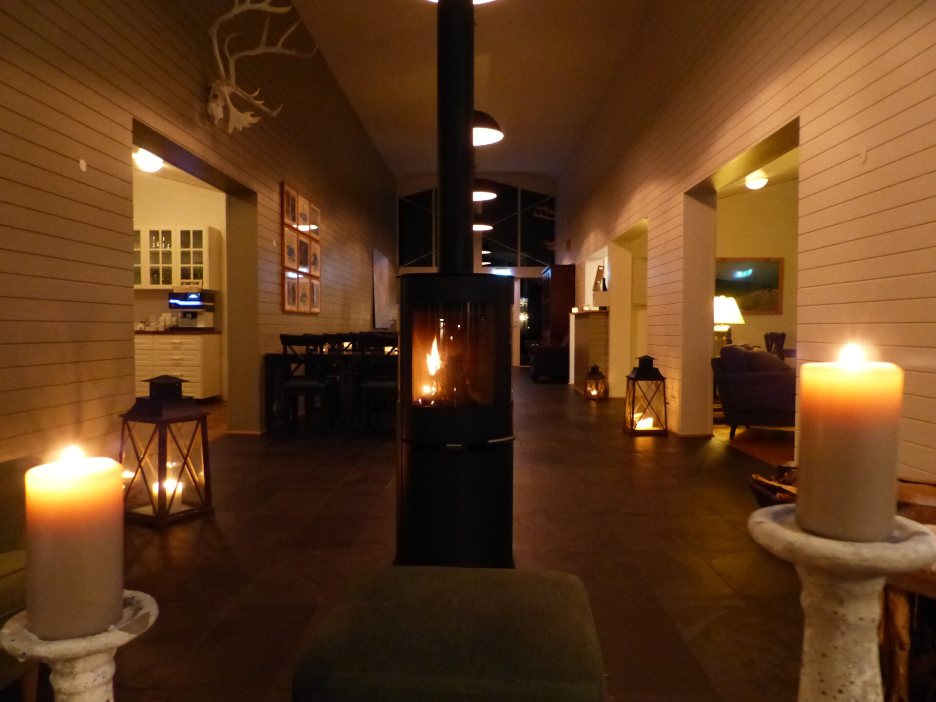 Nice and cozy here at the East Ranga Aurora Lodge , and now the new fire place is up and working well ….
