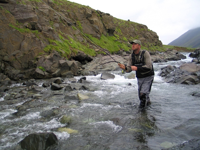 Our small salmon river up North, Hallá opened the 21st of June. As in many other rivers, anglers do not know what to expect the first days. Everything started quietly the first day and a half but yesterday morning a good run of salmon had gone up the river. This resulted in the first salmon of the season in the river caught in the waterfalls.