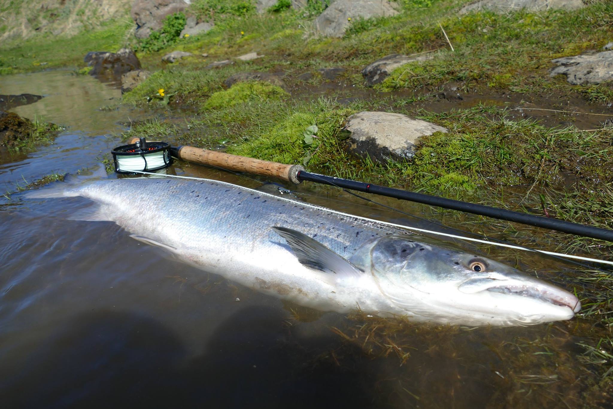 The remaining rivers will open in the next few days with the latest ones opening on July 1st. Salmon has already been seen in most of the rivers that are yet to open. Arni Baldursson took a short trip up to our little river Leirvogsá and saw there three large salmon. Leirvogsá does not open until June 24th.