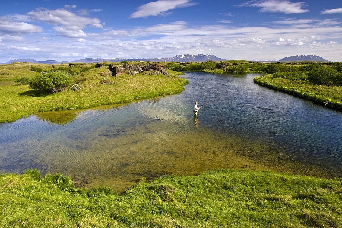 Fishing these beats is easy with streamers, but upstream dry fly and nymph tactics are considerably more effective. Although there is none of our normal variety of biting mosquitoes in Iceland, they do have a number of other chironomids that the trout feed on readily. The brown trout in the Laxa-river in Laxardal and Myvatnssveit have only a few short months of the Icelandic summer to feed as much as possible, so they really feed hard below and on the surface film. Laxardalur fishes 10 rods and Myvatnssveit 14 rods.