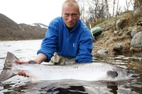 And for those fisherman who are physically able to meet the challenge of tough river conditions and lots of challenging hiking and hard work, the Yokanga is just the ticket. The Yokanga is one of the legendary rivers on the Russian Kola Peninsula for hugh trophy salmon. Until now, this lower section of the river has not been accessible to foreign anglers. Our base camp on the Yokanga will be a newly upgraded tented camp. The beat all in all is 10km long with the base camp placed in the middle of the beat. There will be one guide for every 2 rods and 10 rods fishing the beats. There are three motor boats to cross the river at the top of the beat and on the bottom beat , as well as one motorboat at home pool. Guides are very hard working and are like mountain goats. All transportation during the week is by walking, rafting or by boats with outboard motor to cross the river.