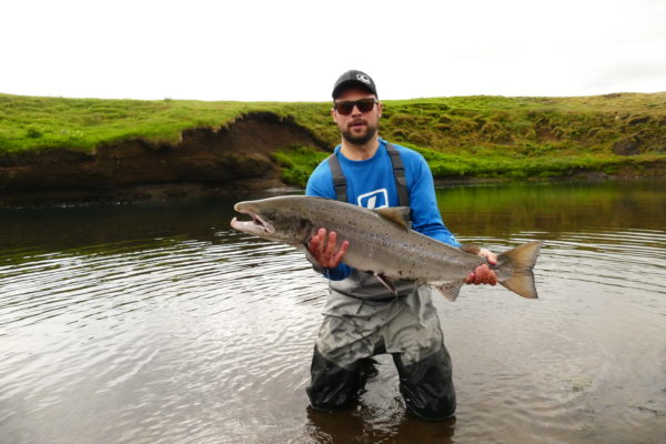 In the autumn when it starts to rain and the water levels move up the salmon enter the river from the glacial river Hvítá.