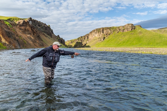 As before i will only be guiding you at the most important pools on beat 3 , rest of the pools is less important, you can figure out your self. We start at the top at pool Jarnhylur , a major pool in every way , the hot spot is from where the stream calms down until the middle lower part of the pool , most of the fish will be from the middle of the stream and all the way to the other site, long cast is important. Jarnhylur is very much underestimated pool and hardly fished as it is 15 minutes walk up there through the canyons , the easy access to the pool is simply to drive up to beat 4 and access it from the top , then you can drive all the way , you fish Jarnhylur from the west bank. Next great pool and one of the most famous pool on the river is Idan pool , I fish that pool from the east bank , you walk up under the cliffs where the pool starts , the hot spot is from the big stone/ cliff standing in the river on the west bank , you will fish 40 meters below that cliff .. best spot is 5 meters above the cliff and 10 meters below the cliff. Next pool Heljarthrom is normally the best pool on the beat , you from the east bank / gravel bank , best spot is from the very top until the big cliff ends , about 50 meters , if water is high you need to fish all the flat down, do not wade deep .. fish can be very much on your side. Couple of km down stream there is a pool called Stapi one of my top favorite , there is a big stone in the river on the east bank , you will have to start 100 meter above that stone , hot spot in middle pool and east side. Next pool is 200 meters below , called Hlidareyrar , hot spot is from top down to middle of the pool , I have never caught a salmon on the lower part of that pool. Next pool below is called Sveinsker , great pool for running fish , you start where the two streams come together and all the way to the end of the pool , the best area is when you are casting to the other site where the cliff ends , there is a sandy beach on the other side , when you are casting towards this sandy beach you are in the best spot. These are only 6 pools , but major ones and they will provide over 80% of the catch on the beat. Feel welcome to contact me at arnibald@lax-a.is if you need more information.