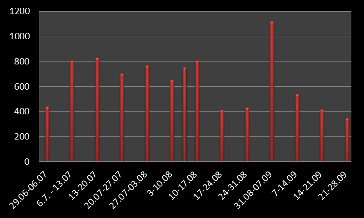 The best week is in fact the first week of September but that can be explained by the fact that worm and spinner was allowed after fly only in the previous months.
